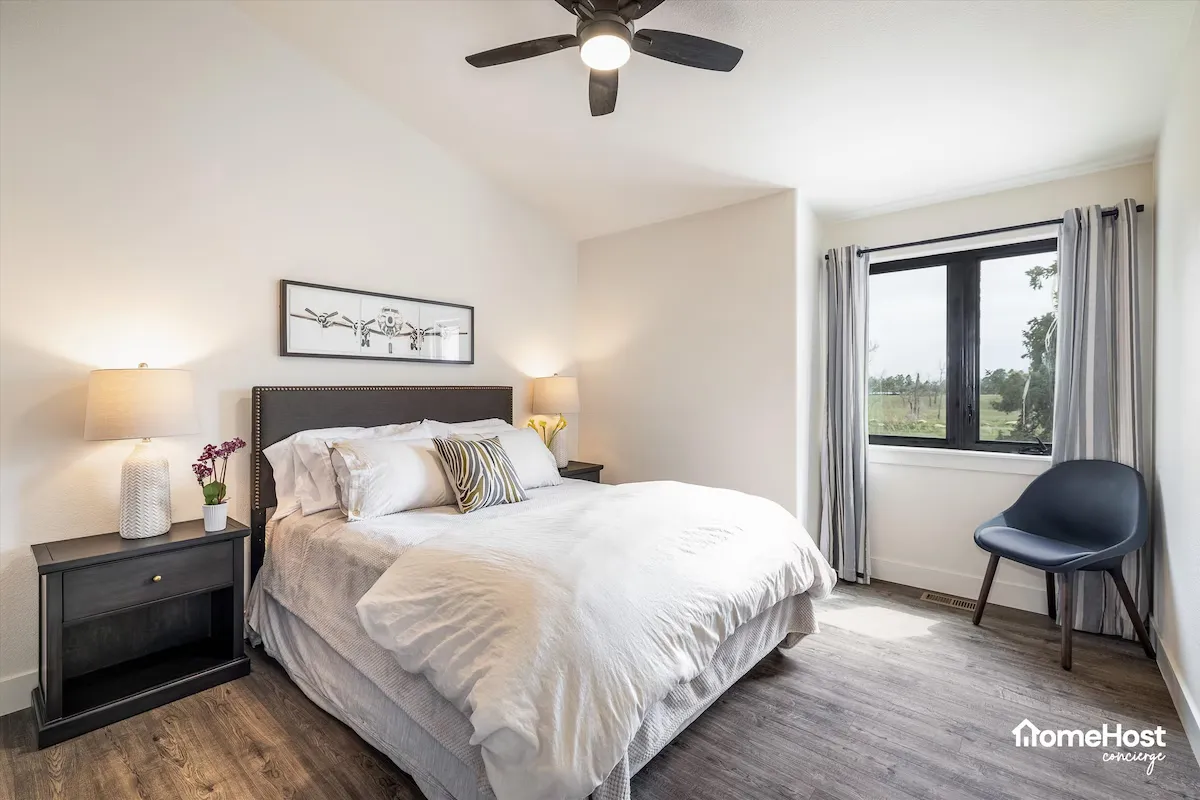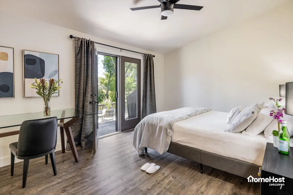 A private king bedroom with access to a shared bathroom